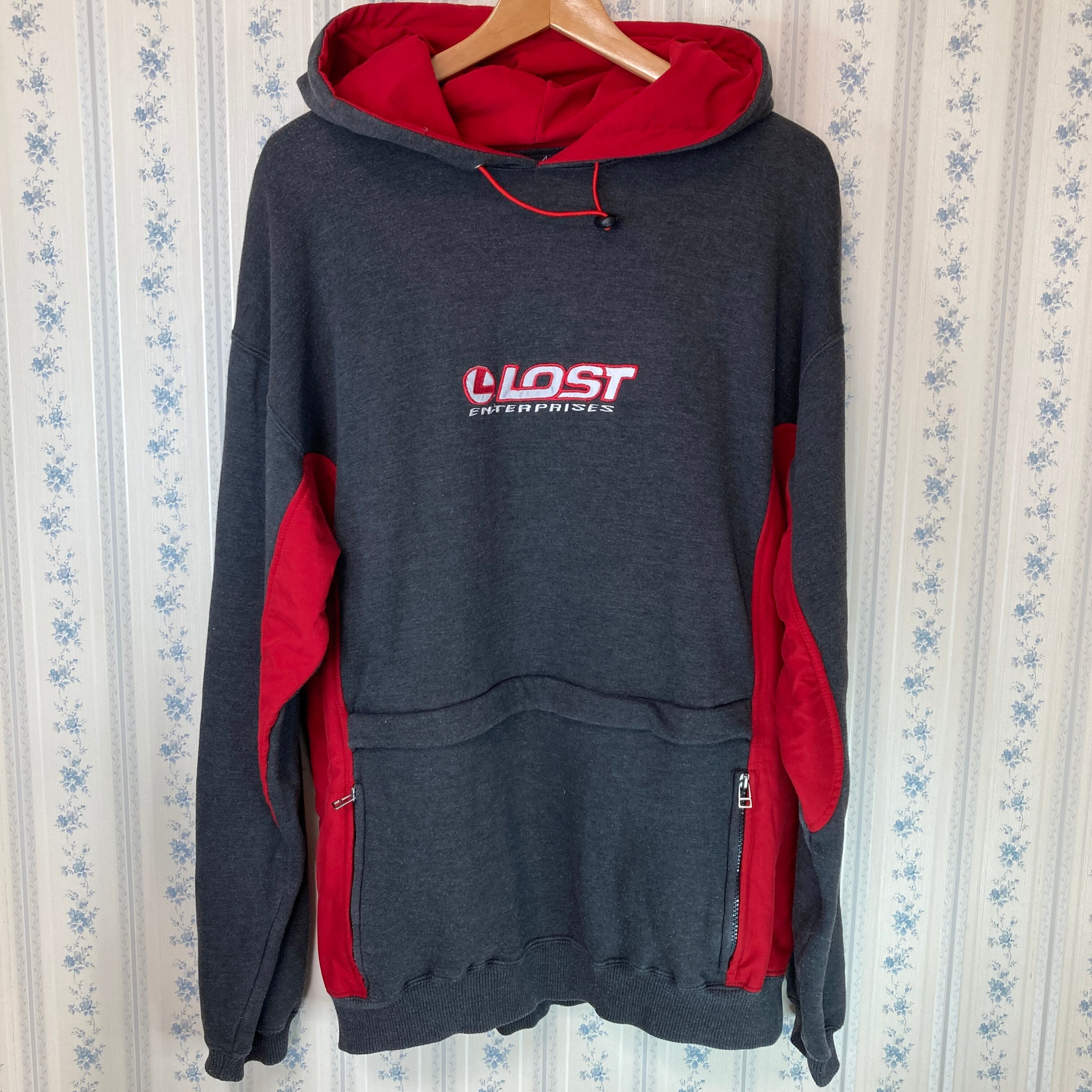 【USA製】90's LOST ENTERPRISES 3ポケット プルオーバー パーカー リフレクター 横乗り