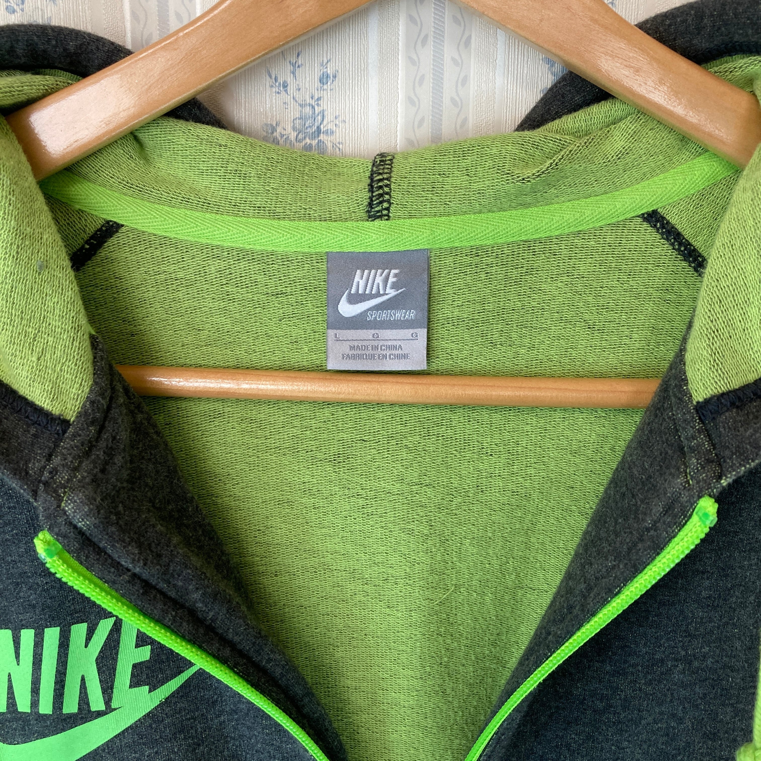 【蛍光色】NIKE ナイキ ネオンカラー ジップアップパーカー ワンポイント ロゴ ネオングリーン 蛍光色